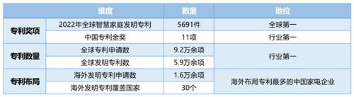 在智慧家庭領(lǐng)域,海爾智家累計公開專利23334件,此次以5691件專利數(shù)位居全球第一。 除此之外,截至2022年底,海爾智家全球累計專利申請9.2萬余項,其中發(fā)明專利5.9萬余項,位居中國家電行業(yè)第一;海外發(fā)明專利累計申請1.6萬余項,覆蓋30個國家,是在海外布局專利最多的中國家電企業(yè);累計獲得中國專利金獎11項,行業(yè)第一。