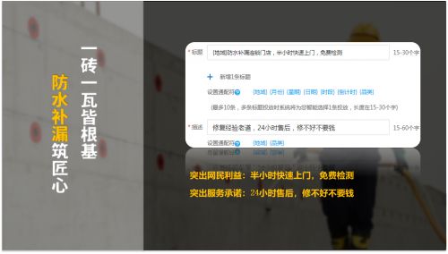 ??長期以來,國內防水行業(yè)集中度較低、市場較為分散,呈現(xiàn)“大行業(yè)、小企業(yè)”現(xiàn)象。面對良莠不齊的狀況,雨昂依托一站式服務能力,突破價格優(yōu)勢,在落地頁上進行“免費上門”、“十年質?!钡某兄Z,結合人性,突出服務與售后水平。用靠譜有質量的施工讓消費者放心,用透明有保障的服務讓消費者省心。 ??日均分發(fā)150億,影響5億主流消費人群,360信息流廣告幫助雨昂強化用戶認知,推動決策落地。經(jīng)過賬戶優(yōu)化,實現(xiàn)轉化量提升120%,點擊量提升257.5%,點擊率提升了60%。雨昂與360的攜手,也讓企業(yè)樹立起可信賴感,筑起一道堅實的品質城墻,推動行業(yè)的規(guī)范良性發(fā)展。 ??一磚一瓦皆根基,防水維修筑匠心。通過雨昂的信息流廣告投放案例,360也為防水維修行業(yè)貢獻了可復制的成功經(jīng)驗:結合行業(yè)背景,從用戶的實際困擾和需求出發(fā),抓住預估點擊率、預估轉化率和轉化出價三大要素。人群方面,聚焦行業(yè)與業(yè)務相關人群;創(chuàng)意方面,抓住受眾心理,突出用戶利益點;落地頁方面,突出產(chǎn)品賣點,縮短轉化路徑。 |