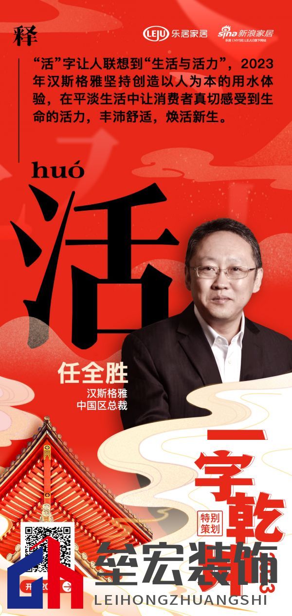 點(diǎn)擊查看活動專題 ??在“2023 一字乾坤”活動中,漢斯格雅中國區(qū)總裁 任全勝用「活」字表達(dá)了2023年的規(guī)劃策略及目標(biāo):“活”字讓人聯(lián)想到“生活與活力”,2023年漢斯格雅堅(jiān)持創(chuàng)造以人為本的用水體驗(yàn),在平淡生活中讓消費(fèi)者真切感受到生命的活力,豐沛舒適,煥活新生。 ??“以漢字賦能中國家居企業(yè),彰顯厚積薄發(fā)之力”,近百位家居人以單字抒寫了各家企業(yè)及媒體的新年愿景與發(fā)展信條,共同攜手開啟2023年家居行業(yè)嶄新篇章! ??*注:如有家電領(lǐng)域相關(guān)新聞資訊、好物推薦等信息可發(fā)給我們,同時歡迎各大媒介和家電品牌方關(guān)注微信公眾號“家居情報站”(微信號:home_news),聯(lián)系我們~ |