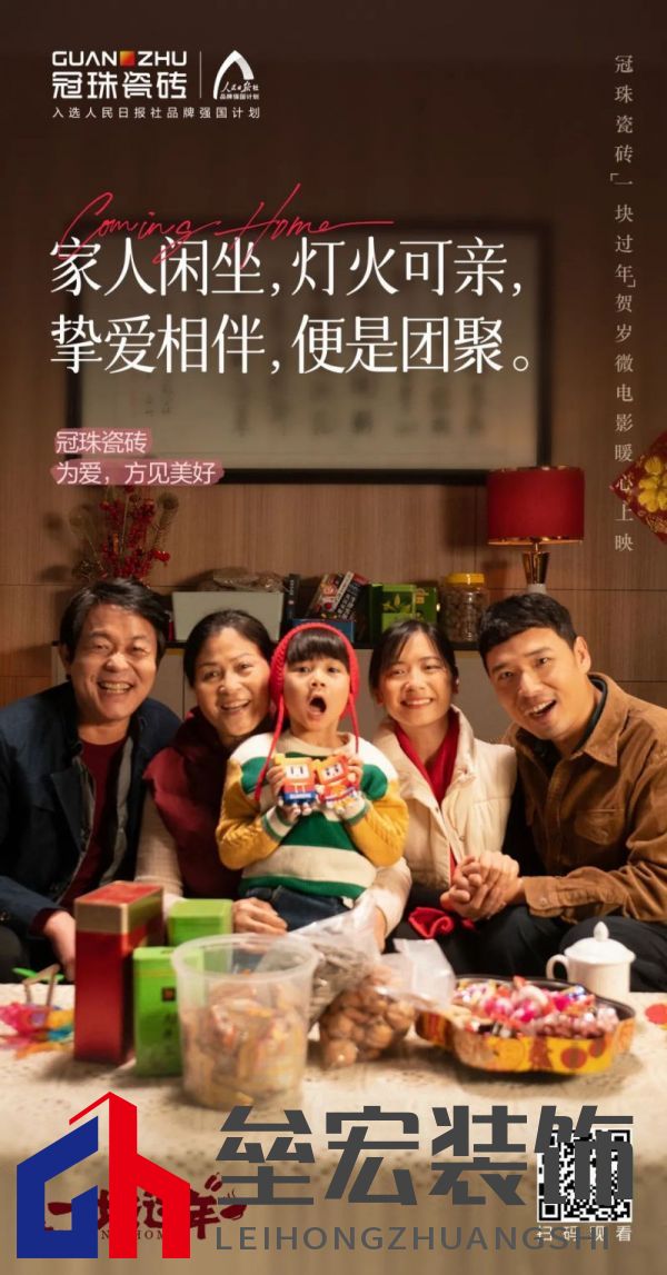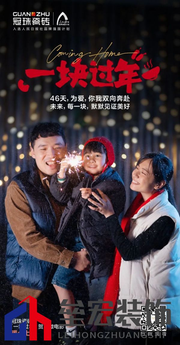 ??我們都說來日方長,實際上每一次的相聚,都是過期不候的一期一會!每一個新家、每一個年、每一頓團(tuán)年飯、每一次的全家福,都值得我們?nèi)σ愿?,向摯愛奔赴?/p> ??冠珠瓷磚謹(jǐn)以《一塊過年》賀歲微電影獻(xiàn)禮廣大家庭,為美好生活提供更優(yōu)的人居方案,也祝愿大家:摯愛相伴、一塊過年、闔家幸福! |