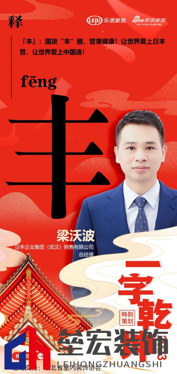 在新浪家居“2023一字乾坤”活動(dòng)中日豐企業(yè)集團(tuán)(武漢)銷售有限公司梁沃波:「豐」國(guó)貨“豐”器,管享健康!讓世界愛上日豐管,讓世界愛上中國(guó)造! “以漢字賦能湖北家居企業(yè),彰顯厚積薄發(fā)之力”,以單字抒寫了各家企業(yè)及媒體的新年愿景與發(fā)展信條,領(lǐng)略楚風(fēng)漢韻下湖北家居人砥礪向前,揚(yáng)帆未來的決心與動(dòng)力,情暖兔歲,新啟華章。 |