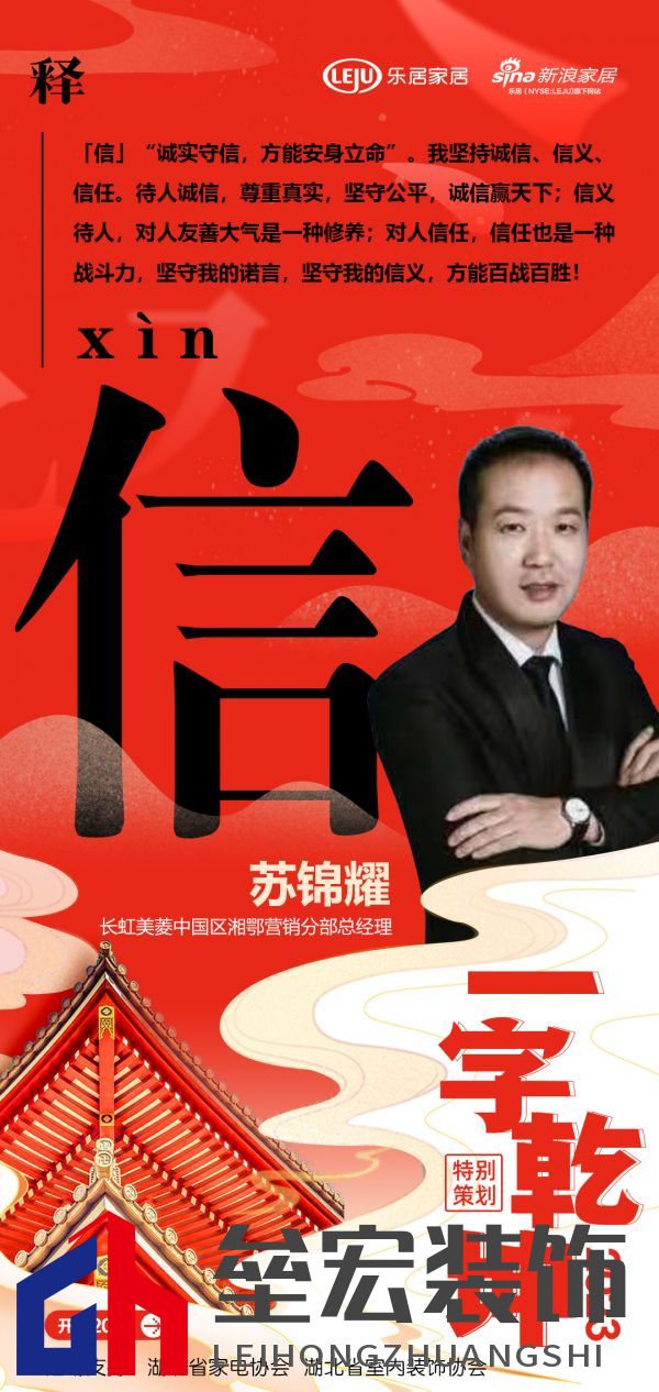 在新浪家居“2023一字乾坤”活動(dòng)中,長(zhǎng)虹美菱中國(guó)區(qū)湘鄂營(yíng)銷(xiāo)分部總經(jīng)理蘇錦耀:「信」“誠(chéng)實(shí)守信,方能安身立命”。我堅(jiān)持誠(chéng)信、信義、信任。待人誠(chéng)信,尊重真實(shí),堅(jiān)守公平,誠(chéng)信贏天下;信義待人,對(duì)人友善大氣是一種修養(yǎng);對(duì)人信任,信任也是一種戰(zhàn)斗力,堅(jiān)守我的諾言,堅(jiān)守我的信義,方能百戰(zhàn)百勝! “以漢字賦能湖北家居企業(yè),彰顯厚積薄發(fā)之力”,以單字抒寫(xiě)了各家企業(yè)及媒體的新年愿景與發(fā)展信條,領(lǐng)略楚風(fēng)漢韻下湖北家居人砥礪向前,揚(yáng)帆未來(lái)的決心與動(dòng)力,情暖兔歲,新啟華章。 |