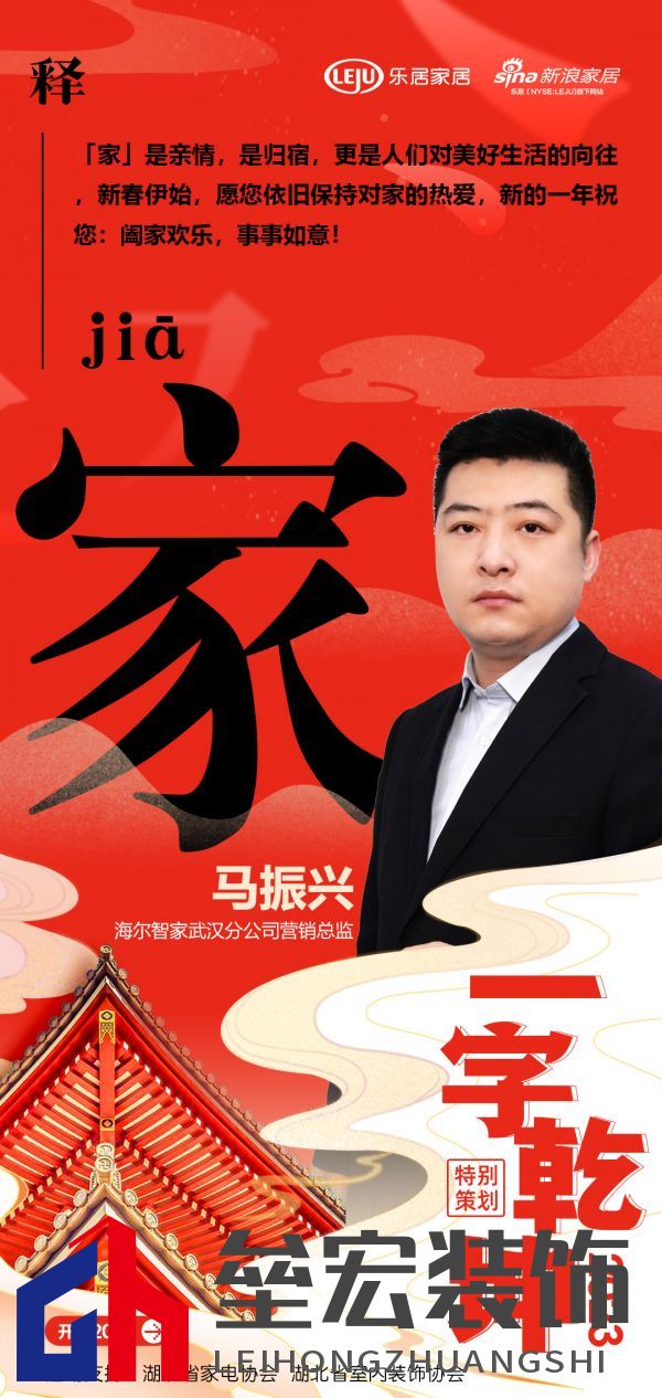 在新浪家居“2023一字乾坤”活動(dòng)中,海爾智家武漢分公司營(yíng)銷(xiāo)總監(jiān)馬振興:「家」是親情,是歸宿,更是人們對(duì)美好生活的向往,新春伊始,愿您依舊保持對(duì)家的熱愛(ài),新的一年祝您:闔家歡樂(lè),事事如意! “以漢字賦能湖北家居企業(yè),彰顯厚積薄發(fā)之力”,以單字抒寫(xiě)了各家企業(yè)及媒體的新年愿景與發(fā)展信條,領(lǐng)略楚風(fēng)漢韻下湖北家居人砥礪向前,揚(yáng)帆未來(lái)的決心與動(dòng)力,情暖兔歲,新啟華章。 |