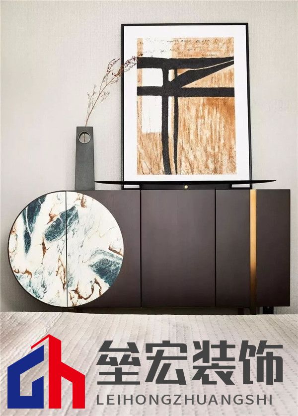 ?? 次臥的布設(shè)延續(xù)了素凈的色調(diào),在這里,東方的韻味是深厚濃郁的,帶著歲月打磨與沉淀的痕跡。幾何藝術(shù)的變奏,在方圓分寸之間,紅鯉嬉游蓮葉間的抽象意境,與干枝花藝對比鮮明,素雅間亦有和潤質(zhì)感。