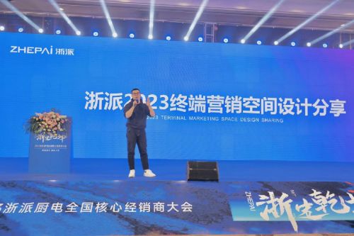 ??順應(yīng)沉浸式終端體驗趨勢,奧杰品牌策劃機構(gòu)副總經(jīng)理馬寧進行了《浙派2023終端營銷空間設(shè)計分享》。馬總重點強調(diào)“線下經(jīng)銷商獲得價值主要在于場景體驗和高質(zhì)量服務(wù)”,需升級策略構(gòu)建空間生態(tài),占據(jù)消費者心智。并指出了浙派2023年將從多個方向升維,即形象高端化,賦予品牌科技與時尚氣息;科技具象化,用科技搭建智能互聯(lián)場景化空間;產(chǎn)品模塊化,重建產(chǎn)品秩序,構(gòu)建用戶真實廚房樣板間。浙派新形象升級理念更有助于品牌影響力的拓展,助力經(jīng)銷商在競爭中取勝。