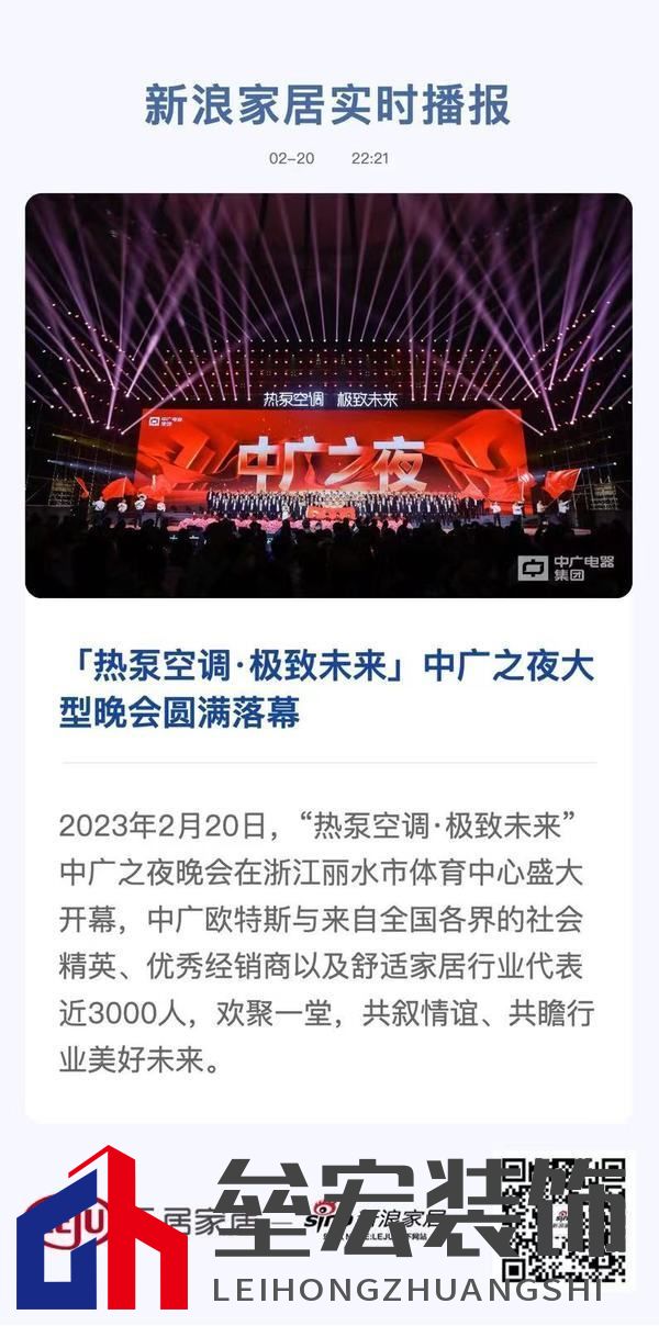 ??2023年2月20日,“熱泵空調(diào)·極致未來中廣之夜晚會在浙江麗水市體育中心盛大開幕,中廣歐特斯與來自全國各界的社會精英、優(yōu)秀經(jīng)銷商以及舒適家居行業(yè)代表近3000人,歡聚一堂,共敘情誼、共瞻行業(yè)美好未來。