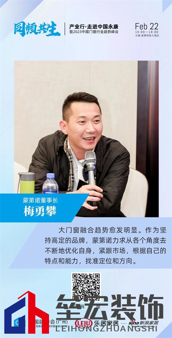??蒙第諾董事長梅勇攀則指出大門窗融合趨勢愈發(fā)明顯。作為堅持高定的品牌,蒙第諾力求從各個角度去不斷地優(yōu)化自身,緊跟市場,根據(jù)自己的特點和能力,找準定位和方向。