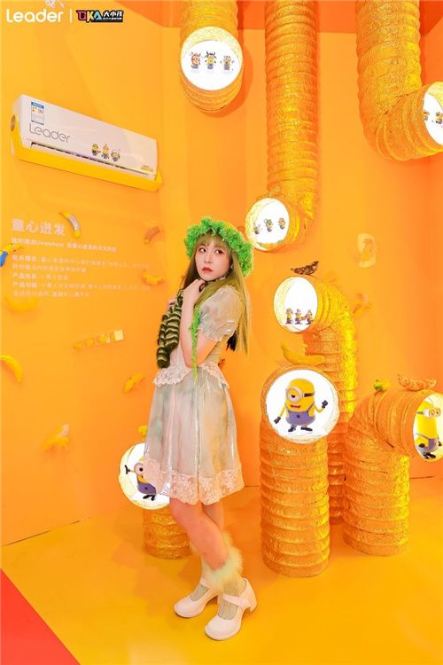 融入小黃人元素!讓用戶穿越“平行世界” Z世代對(duì)個(gè)性的理解各不相同,有人熱愛特立獨(dú)行的服飾,有人喜歡時(shí)尚前衛(wèi)的美妝,有人則對(duì)二次元IP情有獨(dú)鐘?!?022 Z世代IP興趣報(bào)告》中就有數(shù)據(jù)指出,參與調(diào)研的Z世代用戶中,有61%的人購買過IP相關(guān)產(chǎn)品。而在潮流live show現(xiàn)場,各種充滿童趣的IP手辦,尤其是呆萌搞笑的小黃人IP產(chǎn)品,更讓許多年輕人格外喜愛。 “巴那那 巴巴那那 阿比巴卜”,在潮玩手辦空間,只要念出這句通關(guān)密語,就能打開空調(diào)面板造型的傳送門,穿越到小黃人的“平行世界”。在這里,小黃人元素隨處可見,將視線移到展區(qū)中的Leader小黃人空調(diào)上,甚至還能看見玩搖滾的斯圖爾特、戴耳機(jī)的鮑勃和認(rèn)真聽音樂的凱文等經(jīng)典形象。此外,空調(diào)上能變換角度的黃色旋翼臂,也像極了小黃人的造型。