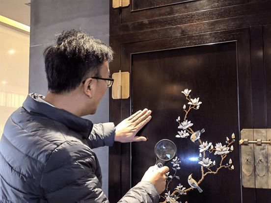 ▲檢測工藝過程同樣不容忽視,這塊清明上河圖的花板,老師傅說雕了快半年了。雖然還是半成品,但神韻已呼之欲出。 孫主任也表示:出生于百工之鄉(xiāng)浙江東陽的傅軍民,屬于起步于蘇作成就于京作的大師級(jí)人物,他的作品符合當(dāng)代評(píng)判紅木家具的六個(gè)標(biāo)準(zhǔn):造型設(shè)計(jì)完美、真材實(shí)料可靠、烘干技術(shù)過硬、精工榫卯到位、雕刻工藝傳神、精細(xì)打磨如肌膚般光滑。觀其作品,近看是家具,遠(yuǎn)看是藝術(shù)品,回頭看是收藏品。