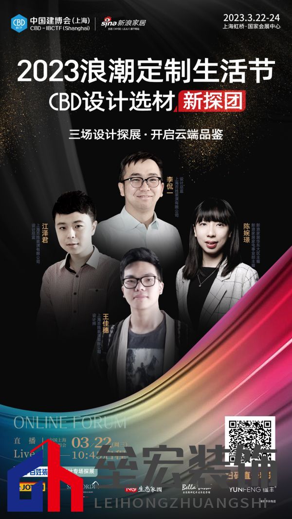??近年來,隨著新生代消費(fèi)群體消費(fèi)習(xí)慣的變化,一站式場景化消費(fèi)成為家居裝修主流選擇。原本的零售單品終端也漸漸迎來融合跨界,場景式綜合體驗(yàn)館的終端消費(fèi)模式。這其中,裝修公司、設(shè)計(jì)公司及定制(高定)企業(yè),也成為家居建材通向終端的一大渠道。 ??在此背景下,為迎合當(dāng)下消費(fèi)習(xí)慣及渠道變革,新浪家居攜手中國建博會(上海)共同打造2023 浪潮定制生活節(jié)啟動儀式暨設(shè)計(jì)選材季系列活動,通過設(shè)計(jì)選材驅(qū)動整合上下游資源,通過定制品類聯(lián)動高端建材,引領(lǐng)高品質(zhì)人居生活風(fēng)向標(biāo)。 ??3月22日,2023中國建博會(上海)將在虹橋國家會展中心揭開帷幕。新浪家居將攜手九位設(shè)計(jì)大咖組成2023浪潮定制生活節(jié)CBD設(shè)計(jì)選材新探團(tuán),第一視角與你共看家居空間設(shè)計(jì)選材新風(fēng)尚,探索行業(yè)最新動態(tài),歡迎掃碼觀看直播。 ??2023浪潮定制生活節(jié)CBD設(shè)計(jì)選材新探團(tuán)第一彈,3月22日10:45啟程!