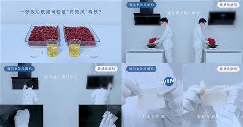 贏在科技:海爾油煙機原創(chuàng)“有效風(fēng)”科技,自動感知煙霧調(diào)節(jié)風(fēng)力大小,從而使吸油紙上沒有明顯油漬。