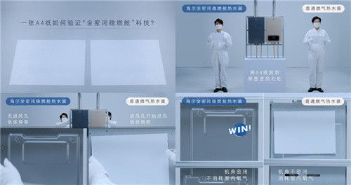 贏在科技:海爾燃?xì)鉄崴髟瓌?chuàng)“全密閉穩(wěn)燃艙”科技,創(chuàng)新密閉結(jié)構(gòu)設(shè)計,機身無進(jìn)風(fēng)孔,因此A4紙無法吸附。