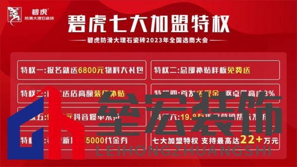 7大特權(quán) 財(cái)富升級(jí) 本次直播,碧虎大理石瓷磚總經(jīng)理高玉秀作為政策官,為在線(xiàn)觀(guān)眾重磅推出限時(shí)加盟特權(quán),在銷(xiāo)售幫扶支持、專(zhuān)業(yè)培訓(xùn)支持、廣告宣傳支持、終端建店支持、生產(chǎn)供貨支持、招商政策支持等【6大幫扶】的基礎(chǔ)上,直播期間報(bào)名還可尊享7大加盟特權(quán)。
