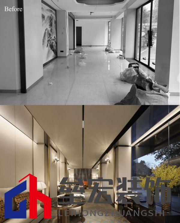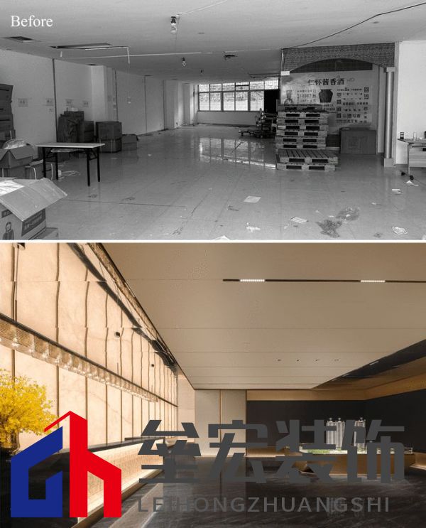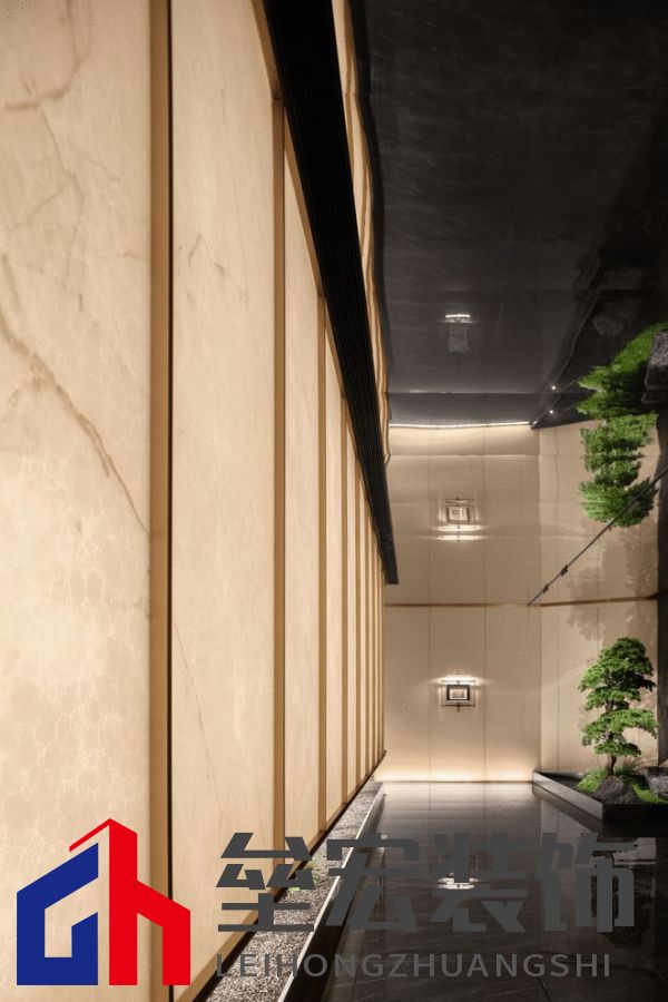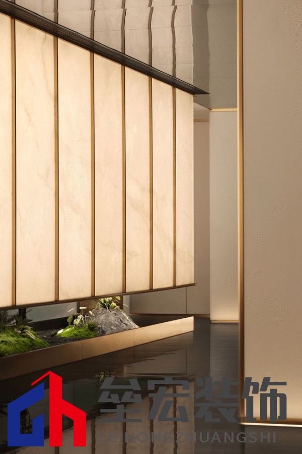 重塑新生 項目原是街邊的一個舊商鋪,經(jīng)過的時候,目光甚至不會在此過久停留,破舊,不起眼,無人在意,仿若靜靜地在等待著枯敗。面對這樣的項目,我們接到的設(shè)計任務(wù)是將其改造為一個臨時銷售中心。打破項目原始印象,重塑空間的文化與氛圍,重建人與在地文化,人與人之間的緊密鏈接,為其注入獨立的靈魂,成為了設(shè)計上的課題。 在保留原始建筑結(jié)構(gòu)的基礎(chǔ)上,我們以“東方詩意”為主題,讓空間每個區(qū)域都有其特有的特點,化用古典美學(xué),由此將空間進行連貫處理,讓場域與文化產(chǎn)生聯(lián)系。   在花城,聽松風 在東方美學(xué)當中,無論是書法、畫作、園林及建筑,留白常被廣泛應(yīng)用,來實現(xiàn)一種輕盈與簡潔的意境。接待前廳從空間的角度,對留白美學(xué)進行詮釋。在設(shè)計上選擇強調(diào)其通透性:前臺的玻璃水晶吊燈與通透的石材墻形成序列,用點、線構(gòu)筑面的意象。硬裝沒有繁雜的紋理,或是濃墨重彩的手法,更著重于人在空間中所感受到的韻律。