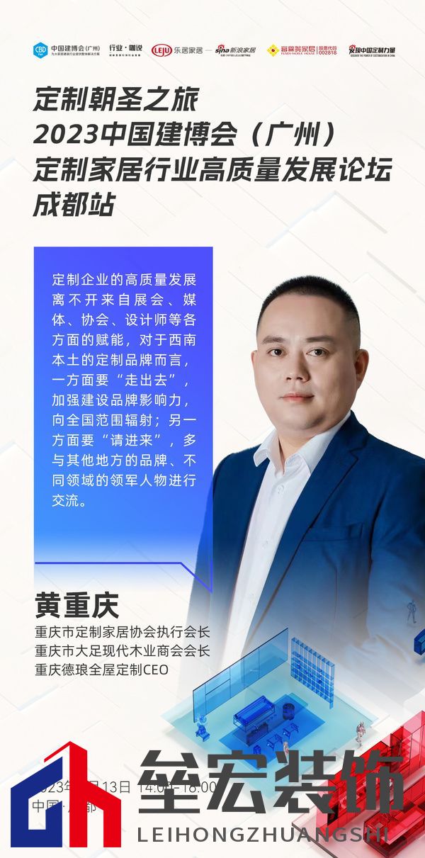 ??重慶市定制家居協(xié)會執(zhí)行會長、重慶市大足現(xiàn)代木業(yè)商會會長、重慶德瑯全屋定制CEO黃重慶:定制企業(yè)的高質(zhì)量發(fā)展離不開來自展會、媒體、協(xié)會、設(shè)計師等各方面的賦能,對于西南本土的定制品牌而言,一方面要“走出去”,加強建設(shè)品牌影響力,向全國范圍輻射;另一方面要“請進來”,多與其他地方的品牌、不同領(lǐng)域的領(lǐng)軍人物進行交流。