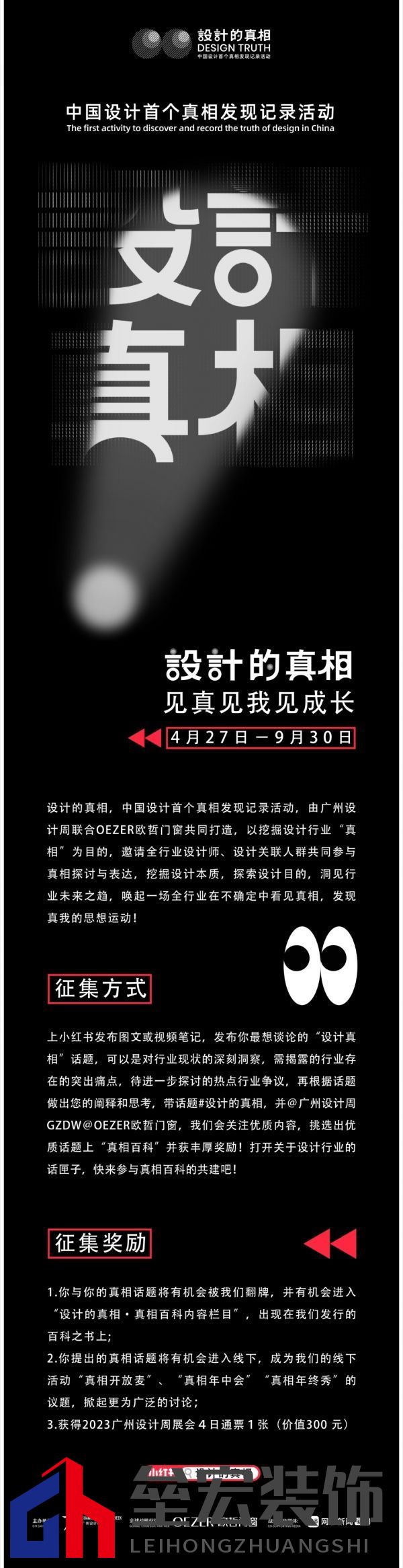 摘要:征集每位設(shè)計(jì)人的聲音,也就獲得了洞見真相的能力  設(shè)計(jì)無處不在。設(shè)計(jì)是為更美好的世界、設(shè)計(jì)是解決問題、設(shè)計(jì)是重新塑造日常。 設(shè)計(jì)身披榮光、背向誤解,常常被贊美、又常常被忽略或過度解讀。 但設(shè)計(jì)就是設(shè)計(jì),每一位敢說真話、勇尋真相的設(shè)計(jì)人,無不共同描繪出設(shè)計(jì)最真實(shí)的模樣!     在設(shè)計(jì)被不斷談?wù)摰漠?dāng)下,從行業(yè)動(dòng)態(tài)到個(gè)體經(jīng)驗(yàn),從業(yè)主、品牌方、設(shè)計(jì)師到行業(yè)關(guān)聯(lián)人群的多元視角,是時(shí)候找出真相了。 這次,我們想說點(diǎn)真話、聊點(diǎn)平時(shí)聽不到的。 這次,我們想用文字記錄思想,將行業(yè)真話收錄在一個(gè)專屬于設(shè)計(jì)的“真相百科”里。  全新IP項(xiàng)目「設(shè)計(jì)的真相」全球發(fā)布禮于4月21日落幕意大利,廣州設(shè)計(jì)周×OEZER歐哲門窗將開放的、真實(shí)的、思辨的真相精神帶到設(shè)計(jì)之都米蘭。 從沉默到表達(dá),真相不再模糊,從立足國內(nèi)到勢(shì)能國際,力量不再單薄。   人們對(duì)于設(shè)計(jì)行業(yè),有著太多的好奇、質(zhì)疑與不確定,可以肯定的一點(diǎn)是,我們今天所處的美好世界,是由一些勇于向前和敢于嘗試的設(shè)計(jì)師創(chuàng)造的,他們是精銳的“先行者”、是撕碎標(biāo)簽的“叛逆者”,也是較真的“思辯者”、真誠的“平常人”。 他們探討和表達(dá)真相,并不僅限于對(duì)行業(yè)的痛點(diǎn)、秘密、不完美發(fā)幾句牢騷,而是憑著信仰之尺,以期助力中國設(shè)計(jì)師自我成長及設(shè)計(jì)圈層的長遠(yuǎn)發(fā)展!                   待解決的問題很多,各位自有心中答案;待發(fā)掘的真相很多,期待你能打開新的話題。 我們發(fā)起“真相百科”征集,聯(lián)動(dòng)權(quán)威媒體加持助力,持續(xù)生產(chǎn)話題內(nèi)容造勢(shì),是想以共創(chuàng)為原點(diǎn)延續(xù)思考,為設(shè)計(jì)關(guān)聯(lián)人群提供全新的觀點(diǎn)表達(dá)與交流的契機(jī),共同講述與揭露那些設(shè)計(jì)行業(yè)背后的秘密。最終,征集而來的“設(shè)計(jì)真相”將會(huì)收錄在“真相百科”里發(fā)行,讓真相價(jià)值有跡可循。  END |