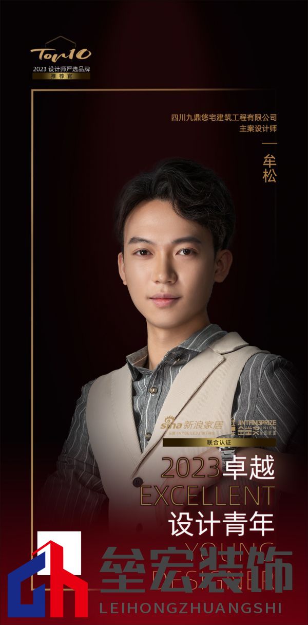 ??室內(nèi)設(shè)計是一種創(chuàng)意與藝術(shù)的結(jié)合,設(shè)計者結(jié)合市場共同趨勢和藝術(shù)發(fā)展變革,深入探尋人與人、人與空間、空間與自然的和諧關(guān)系。由新浪家居和金堂獎全國聯(lián)盟發(fā)起的“2023卓越設(shè)計青年”,是設(shè)計業(yè)界最具傳播價值的年度先鋒榮譽(yù),新浪家居與金堂獎聯(lián)名認(rèn)證,旨在發(fā)掘和表彰室內(nèi)設(shè)計領(lǐng)域表現(xiàn)卓越的杰出青年設(shè)計師。本期四川九鼎悠宅建筑工程有限公司 主案設(shè)計師牟松榮膺“2023卓越設(shè)計青年”稱號。