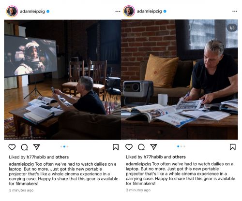 ??此外,《愛樂之城》導(dǎo)演達(dá)米恩·查澤雷執(zhí)導(dǎo)的圣丹斯獲獎短片《爆裂鼓手》攝影師Edd Lukas,也特意曬出了自己使用堅(jiān)果N1 Ultra進(jìn)行日常觀影與工作的照片。可以看到,堅(jiān)果的三色激光投影儀正在以其專業(yè)性俘獲這些好萊塢大咖們的心,讓他們自發(fā)的向粉絲種草這款難得一見的好產(chǎn)品。