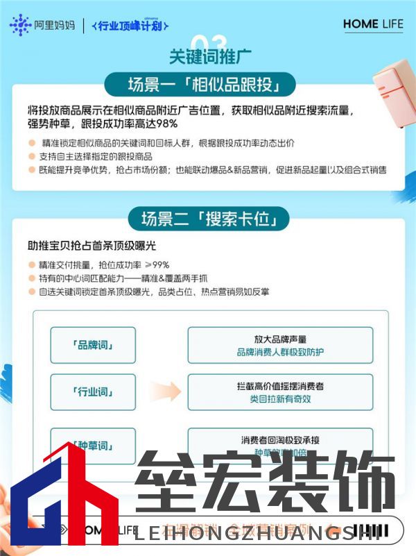 ??在2024年的尾聲,家享生活行業(yè)即將迎來(lái)一場(chǎng)規(guī)模、聲量與優(yōu)惠力度均超越往年的歲末營(yíng)銷(xiāo)!在國(guó)家補(bǔ)貼與消費(fèi)刺激政策的加持下,淘寶天貓聯(lián)合品牌投入60億,配合推出覆蓋90余個(gè)品類(lèi)的多重優(yōu)惠,層層激活消費(fèi)人群換新購(gòu)新需求,穩(wěn)居家電市場(chǎng)銷(xiāo)售規(guī)模首位。雙12、圣誕、元旦節(jié)日接踵而至,必將出現(xiàn)更加火爆的銷(xiāo)售熱潮,為商家?guī)?lái)生意爆發(fā)的寶貴窗口期! ??阿里媽媽在今年天貓雙11重磅利好與產(chǎn)品升級(jí)的基礎(chǔ)上,持續(xù)加碼對(duì)商家的策略支持,搶先發(fā)布《家享生活行業(yè)經(jīng)營(yíng)藍(lán)寶書(shū)》,從家享生活行業(yè)趨勢(shì)洞察、消費(fèi)人群洞察出發(fā),結(jié)合領(lǐng)跑案例與「關(guān)鍵詞推廣」產(chǎn)品能力支持,幫助商家精準(zhǔn)感知市場(chǎng)風(fēng)向、深度掌握經(jīng)營(yíng)密碼,迅速起量,穩(wěn)步創(chuàng)收! ??家享生活行業(yè)趨勢(shì)洞察 ??圍繞「家享生活行業(yè)」市場(chǎng)趨勢(shì)與需求升級(jí),解碼國(guó)補(bǔ)政策下家享行業(yè)市場(chǎng)機(jī)遇,引導(dǎo)商家在歲末前夕提前布局、盡早規(guī)劃,通過(guò)重要品類(lèi)交叉滲透與場(chǎng)景化組合,在銷(xiāo)售窗口期迅速對(duì)接消費(fèi)群體心智。
