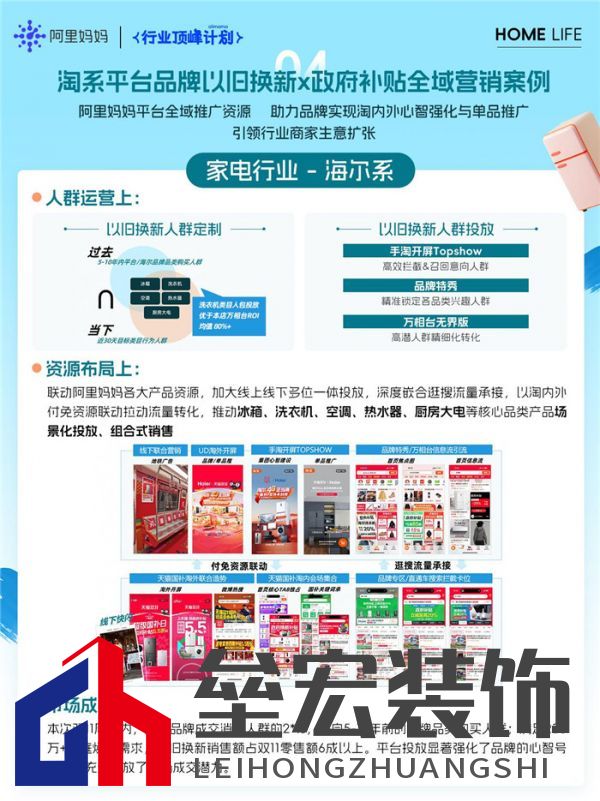 ??領(lǐng)跑案例剖析 ??海爾: ??依托平臺(tái)產(chǎn)品資源:手淘開(kāi)屏Topshow(高效攔截&召回意向人群)+品牌特秀(精準(zhǔn)鎖定各品類(lèi)興趣人群)+萬(wàn)相臺(tái)無(wú)界版(高潛人群精細(xì)化轉(zhuǎn)化) ??線(xiàn)上線(xiàn)下多位一體投放,深度嵌合逛搜流量承接,以淘?xún)?nèi)外付免資源聯(lián)動(dòng)拉動(dòng)流量轉(zhuǎn)化,冰箱、洗衣機(jī)、空調(diào)、熱水器、廚房大電等核心品類(lèi)產(chǎn)品場(chǎng)景化投放、組合式銷(xiāo)售,本次雙11周期內(nèi)成交人群2*%來(lái)自5-10年前的品牌品類(lèi)購(gòu)買(mǎi)人群。