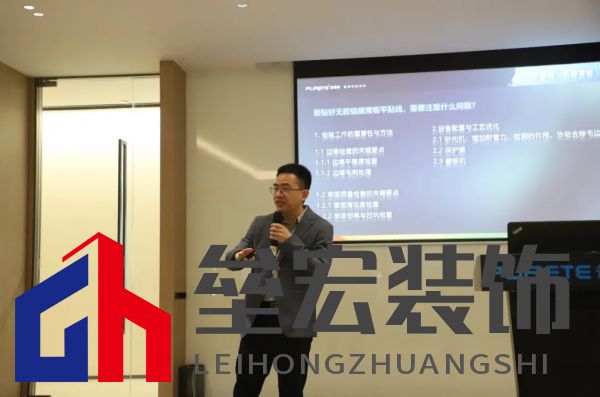 ??深度鏈接,共謀發(fā)展 ??1.零距離探秘智造實(shí)力 ??嘉賓團(tuán)實(shí)地參觀瀚秋順德總部的制造車間,近距離觀摩鋁蜂窩板飾面的工藝流程,感受數(shù)字化生產(chǎn)對品質(zhì)與效率的精準(zhǔn)把控。 ??2.上下游經(jīng)驗(yàn)分享 ??優(yōu)秀上下游企業(yè)踴躍分享各自領(lǐng)域目前最新的成果,從膠水、膜材、金屬材料到飾面加工設(shè)備,共探鋁蜂窩板技術(shù)趨勢。上下游精英同臺論道,圍繞"企業(yè)如何降本增效"、"飾面技術(shù)如何賦能"、"全鋁家居出海痛點(diǎn)"等議題展開思維碰撞,為行業(yè)注入破局靈感。