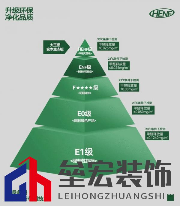 1環(huán)保升級 從ENF到HENF級的新升級 HENF級作為“天花板”級環(huán)保標準,要求產(chǎn)品在30℃高溫環(huán)境下甲醛釋放量≤0.025mg/m3,檢測條件較ENF級(23℃)嚴苛,是環(huán)保品質的一大躍升。