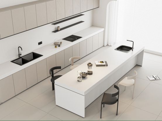 蒂羅寶攜手全球抗菌技術(shù)專家美國妙抗保?,在臺面制造過程中,內(nèi)建SilverShield??抗菌技術(shù);采用高純3A 級天然石英砂 + 柔拋技術(shù) , 表面溫潤如玉 , 極致觸摸手感?, 物理亮度達(dá)50度以上 , 更致密、更耐候、更抗污;源于高山、流水、云海、雪原等自然景觀的靈感?, 以極簡、干凈、明亮、潔凈的產(chǎn)品開發(fā)理念?, 完美貼合高質(zhì)高端烹飪區(qū)域臺面需求。 抗菌石英石臺面優(yōu)勢: 可與食品直接接觸 減少交叉污染的風(fēng)險 防止細(xì)菌引起的異味 提供長期抗菌保護 抑制大腸桿菌、金黃色葡萄球菌等多種細(xì)菌生長,有效抗菌率高達(dá)99.99%