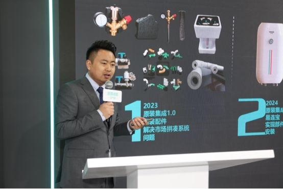 四季沐歌集團(tuán)產(chǎn)品技術(shù)研究院副院長(zhǎng)徐蒙 ??四季沐歌集團(tuán)產(chǎn)品及系統(tǒng)開發(fā)中心部部長(zhǎng)王帥推介的空氣能原裝采暖系統(tǒng)易連系列,2小時(shí)即可快速安裝,當(dāng)天實(shí)現(xiàn)采暖,比同類產(chǎn)品節(jié)能20%,提供6年全套保修服務(wù),耐用且性價(jià)比高。
