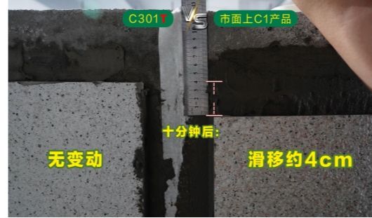 ??解碼“T”背后的抗滑移黑科技 ??瓷磚膠型號(hào)中的“T”代表抗滑移技術(shù)(Anti-Slip Technology)。針對(duì)大磚鋪貼時(shí)因自重導(dǎo)致的下滑難題,C301T通過優(yōu)化分子結(jié)構(gòu)與粘結(jié)力分布,實(shí)現(xiàn)快速定型、長(zhǎng)期穩(wěn)固不位移。