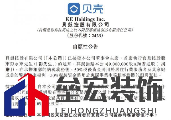 ??4月17日,貝殼發(fā)布自愿性公告稱,已接獲貝殼董事會主席、首席執(zhí)行官及控股股東彭永東的通知,其擬捐贈9,000,000股A類貝殼普通股(價(jià)值約合人民幣4.4億元),在承擔(dān)相應(yīng)的納稅義務(wù)后,50%稅后資金將用于居住行業(yè)服務(wù)者及其家庭成員的醫(yī)療健康福利,50%稅后資金將用于應(yīng)屆畢業(yè)生等租客群體的租房幫扶。 ??當(dāng)前,貝殼平臺上聚集了幾十萬多名居住行業(yè)服務(wù)者,包括房產(chǎn)交易經(jīng)紀(jì)人、家裝安裝工、租賃管家等。貝殼組織內(nèi)司齡超過10年的老員工已經(jīng)有1.4萬多位。通過兜住居住行業(yè)服務(wù)者及其家庭成員的醫(yī)療健康風(fēng)險(xiǎn),讓這些服務(wù)者更有尊嚴(yán)地提供服務(wù),更安心地工作,將有益于服務(wù)者長期執(zhí)業(yè)以及為消費(fèi)者提供更優(yōu)質(zhì)的服務(wù)。 ??在城市里開啟租住生活,往往是應(yīng)屆畢業(yè)生從校園走向社會的第一步,貝殼董事會主席的捐贈將幫助應(yīng)屆畢業(yè)生等群體“租得起”“住得好”,緩解他們的住房問題,使他們能夠更加專注于自身的發(fā)展和成長。 ??中國的新居住行業(yè)剛剛開始起步,全行業(yè)呼喚“有品質(zhì)的服務(wù),有品質(zhì)的服務(wù)者”。一方面惠及居住行業(yè)服務(wù)者及其家庭成員,一方面惠及應(yīng)屆畢業(yè)生等租客群體,捐贈用途聚焦于居住服務(wù)行業(yè)本身,貝殼董事會主席的此次捐贈將助力居住行業(yè)向上、向善發(fā)展。