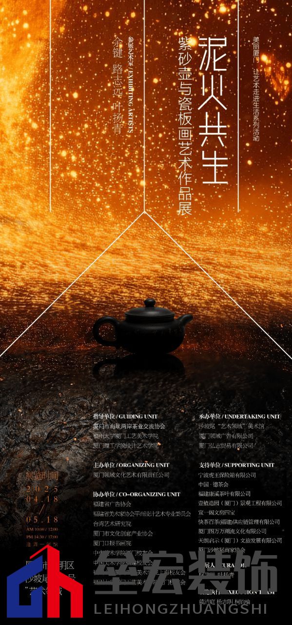 讓藝術(shù)回歸生活,讓傳統(tǒng)照見未來 作為“美麗廈門 讓藝術(shù)走進生活”系列活動之一,本次展覽得到廈門海峽兩岸茶業(yè)交流協(xié)會、福州大學(xué)廈門工藝美術(shù)學(xué)院等機構(gòu)的指導(dǎo)與支持,旨在通過藝術(shù)賦能城市文化,推動傳統(tǒng)工藝的發(fā)展。廈門以其包容的文藝氛圍與深厚的茶文化底蘊,為非遺傳承與創(chuàng)新提供了豐沃土壤。 “泥火共生”不僅是一場藝術(shù)聯(lián)展,更是一場關(guān)于文化傳承與創(chuàng)新的思辨之旅。在這里,傳統(tǒng)工藝掙脫時間桎梏,現(xiàn)代藝術(shù)汲取歷史養(yǎng)分,共同編織出“藝術(shù)走進生活”的美好圖景。這個春天,讓我們走進美麗廈門,在泥與火的交響中,觸摸文化脈搏,見證傳統(tǒng)工藝在新時代的涅槃重生。