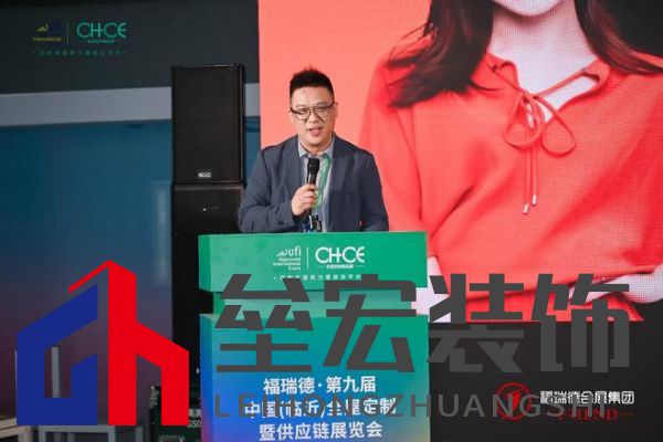 ▲宏科安盛總經(jīng)理劉廣金先生作《高定美學(xué)板材的風(fēng)口》主題演講