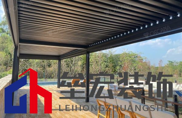 ??電動(dòng)翻轉(zhuǎn)百葉篷:極簡的線條與啞光質(zhì)感,完美融入建筑風(fēng)格,展現(xiàn)出低調(diào)奢華的美學(xué)理念。其葉片可精準(zhǔn)調(diào)節(jié)角度,既能過濾烈日下的強(qiáng)光,又能遮擋微雨天的細(xì)雨,為賓客提供舒適的戶外體驗(yàn)。這種設(shè)計(jì)不僅滿足了遮陽功能需求,更成為空間美學(xué)的延伸,讓戶外空間在不同天氣條件下都能保持其獨(dú)特魅力。 ??垂直篷:如同輕盈的紗幕,沿休閑區(qū)邊界垂落,有效阻隔側(cè)面強(qiáng)光與視線干擾,同時(shí)保持通透的視野。這種設(shè)計(jì)巧妙地平衡了私密性與開放性,讓賓客在享受自然美景的同時(shí),也能擁有專屬的寧靜空間。